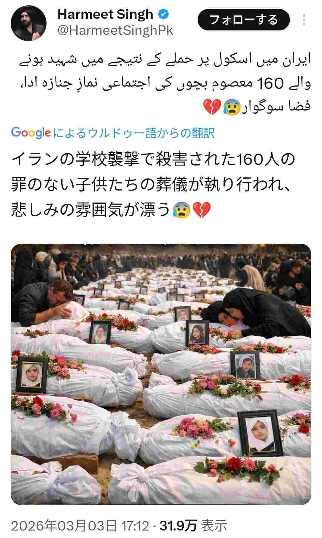 いきなり他国にミサイルぶちこんで子供大勢殺してもミスなら問題じゃないってマジ? - 102 : 2026/03/12(木) 18:10:23.178 ID:EFlpK/H8D