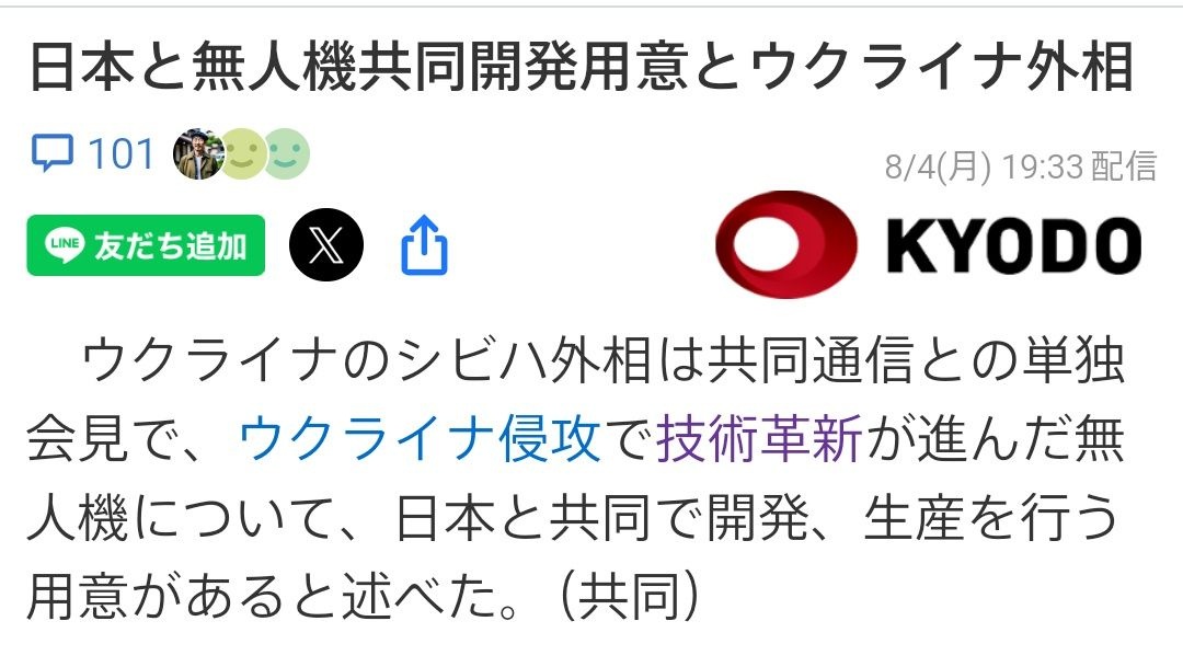 - 無人機の開発は日本としても課題だしウクライナが実戦で使ってくれるなら悪くはないけど絶対承認は降りないわ