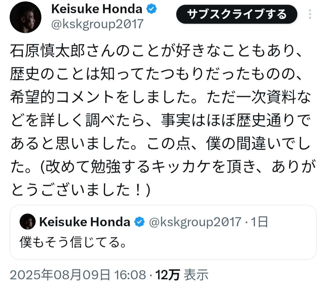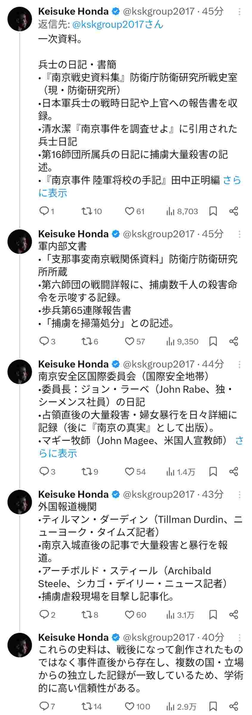 だから複数の史料とその出所をチェックして総合的に判断して信頼性が高いと結論付けてる本田は素晴らしい姿勢だよな - 28 : 2025/08/09(土) 18:42:48.325 ID:jeC4rsESr