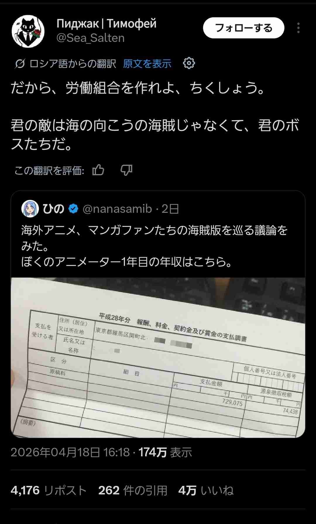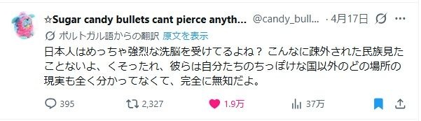 そのポストが自動翻訳されて他所の国のタイムラインにも流れてるなら当然の反応だよ