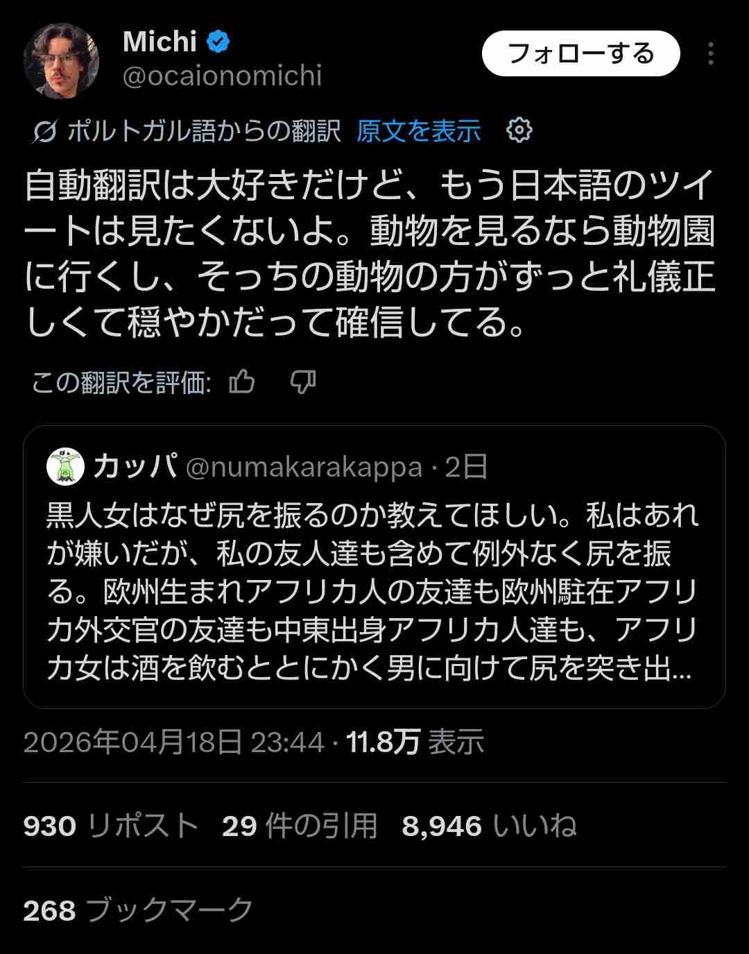 小日本の異常性を翻訳して拡散しなくても良くなったのは大きいな🙂