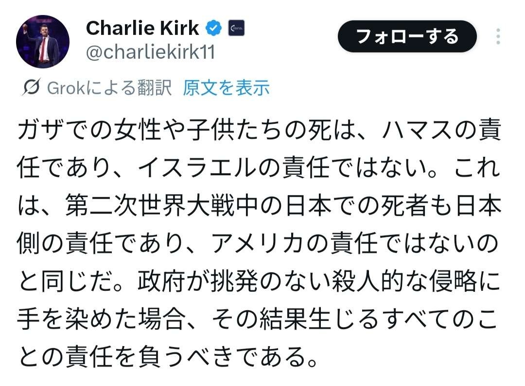 なぜならチャーリーはガザから来ていない - 14 : 2025/09/11(木) 15:44:13.200 ID:butS/QHjw
