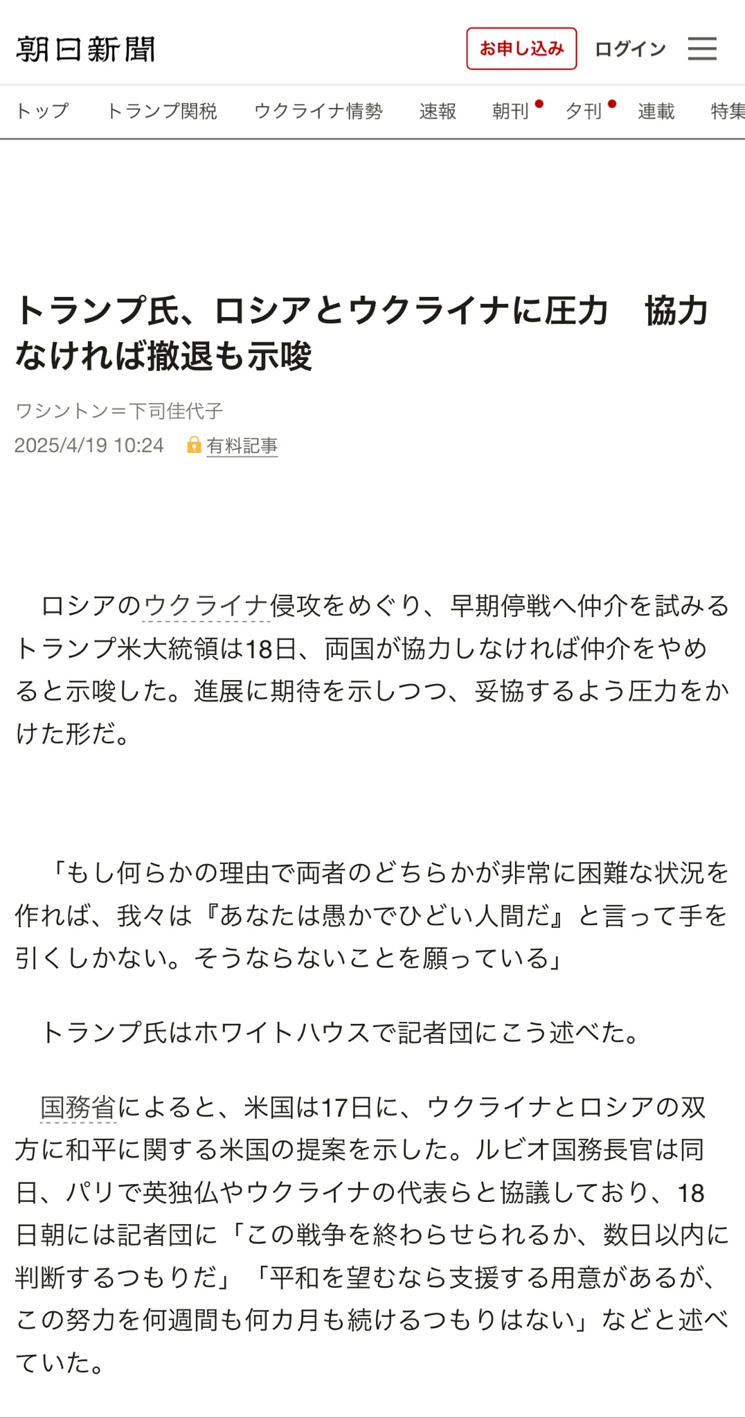 だから停戦したいならロシアの言いなりになるしかない - 17 : 2025/04/19(土) 21:22:45.81 ID:ArzzzsBiH