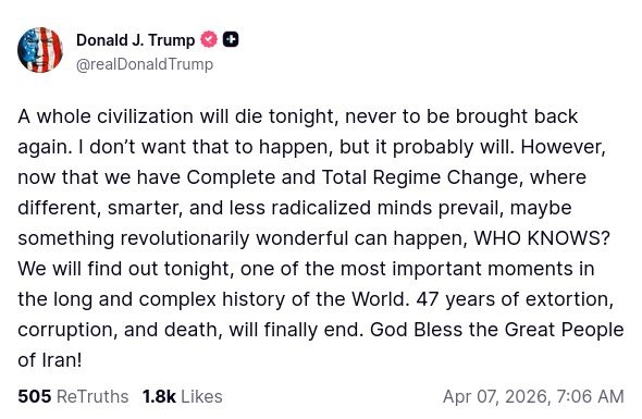 トランプ「今夜、イランで文明は終わる。47年の腐敗がついに崩壊する」