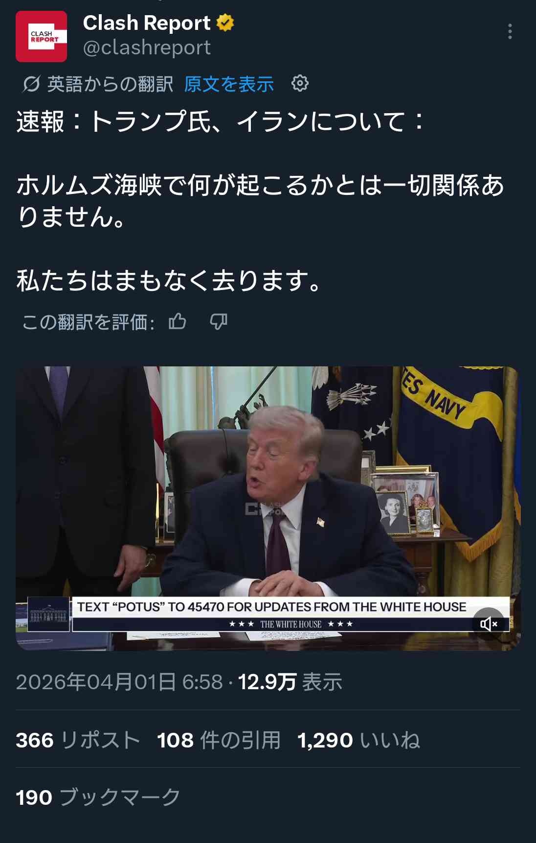 トランプ本当に尻尾を丸めてすごすごと逃げ帰るつもり? - 295 : 2026/04/01(水) 13:25:43.384 ID:kuKbzPFDO