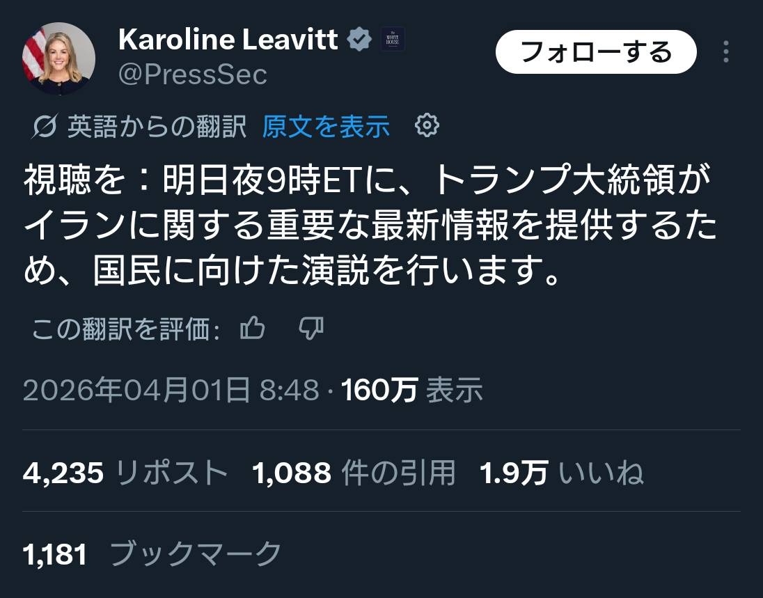 アメリカやっちまっただろこれ - 262 : 2026/04/01(水) 13:17:07.421 ID:yAtYr7CyP