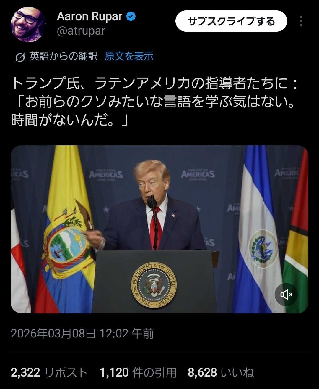 トランプおやびん、中南米諸国との首脳会談で「お前らのゴミ言語を学ぶ気はない」と言い放ってしまう