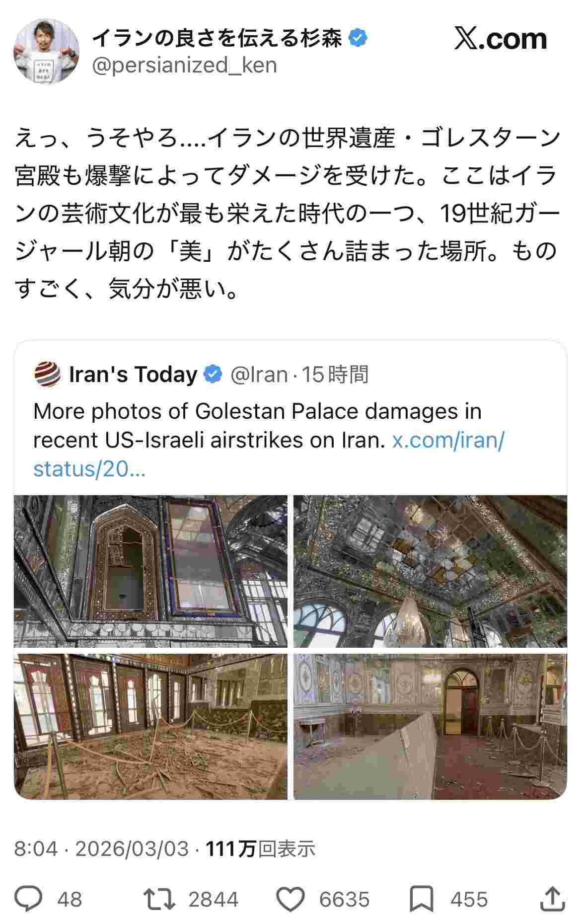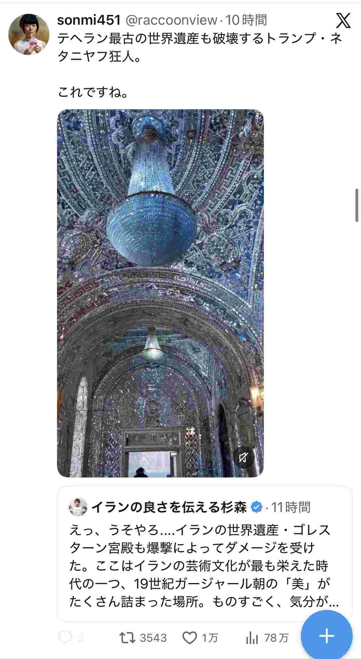 トランプさん、イランの芸術文化の最高峰である世界遺産のゴスターン神殿を破壊…