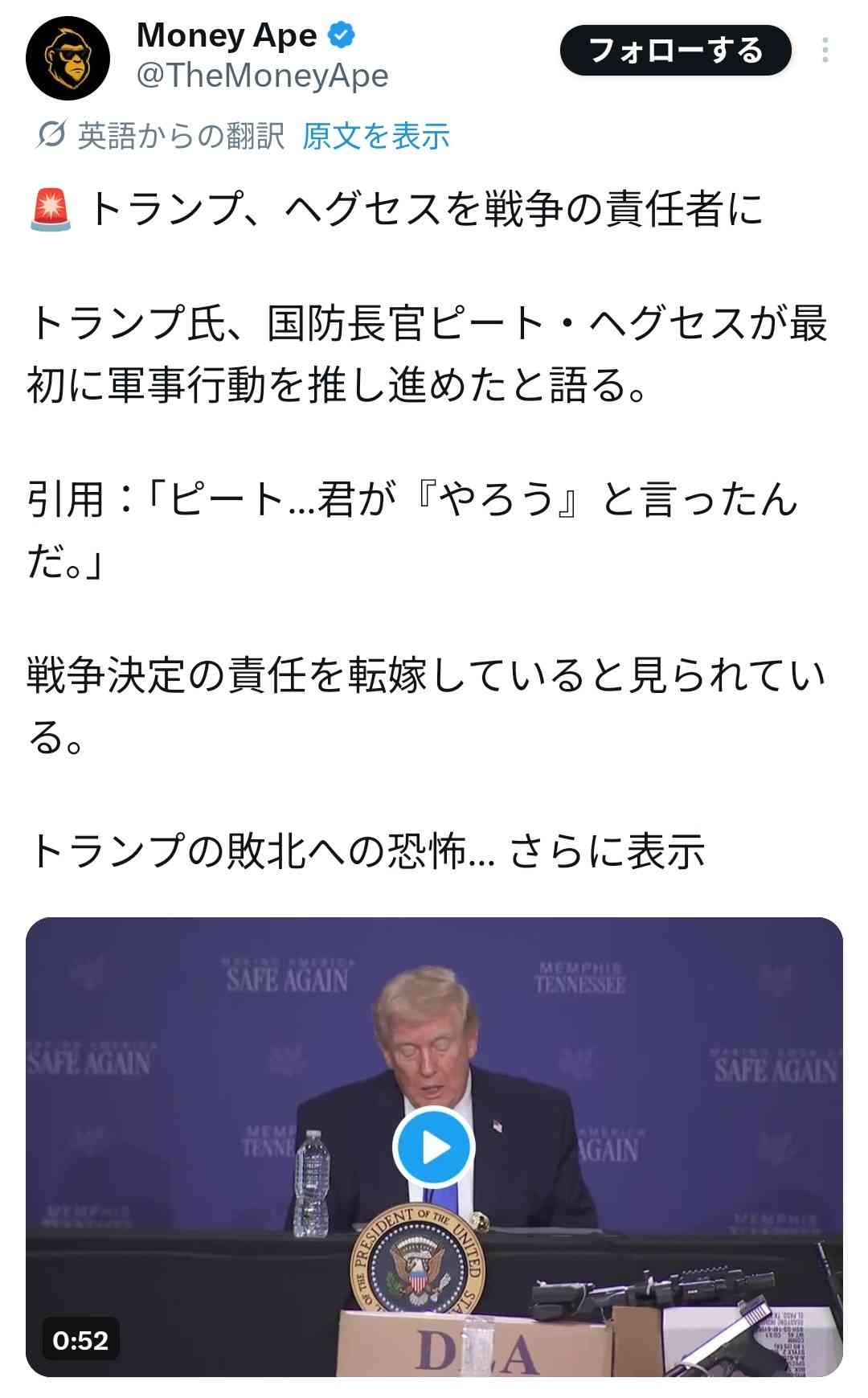 - ヘグセス「トランプさん」