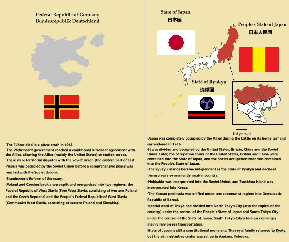 - ドイツはソ連に戦争しかけて負けたけど、ソ連が日ソ中立条約を破棄したのは降伏直前の8月8日、侵攻してきたのは9日で日本は撃退したし日本の分割統治を要求できる立場じゃないでしょ