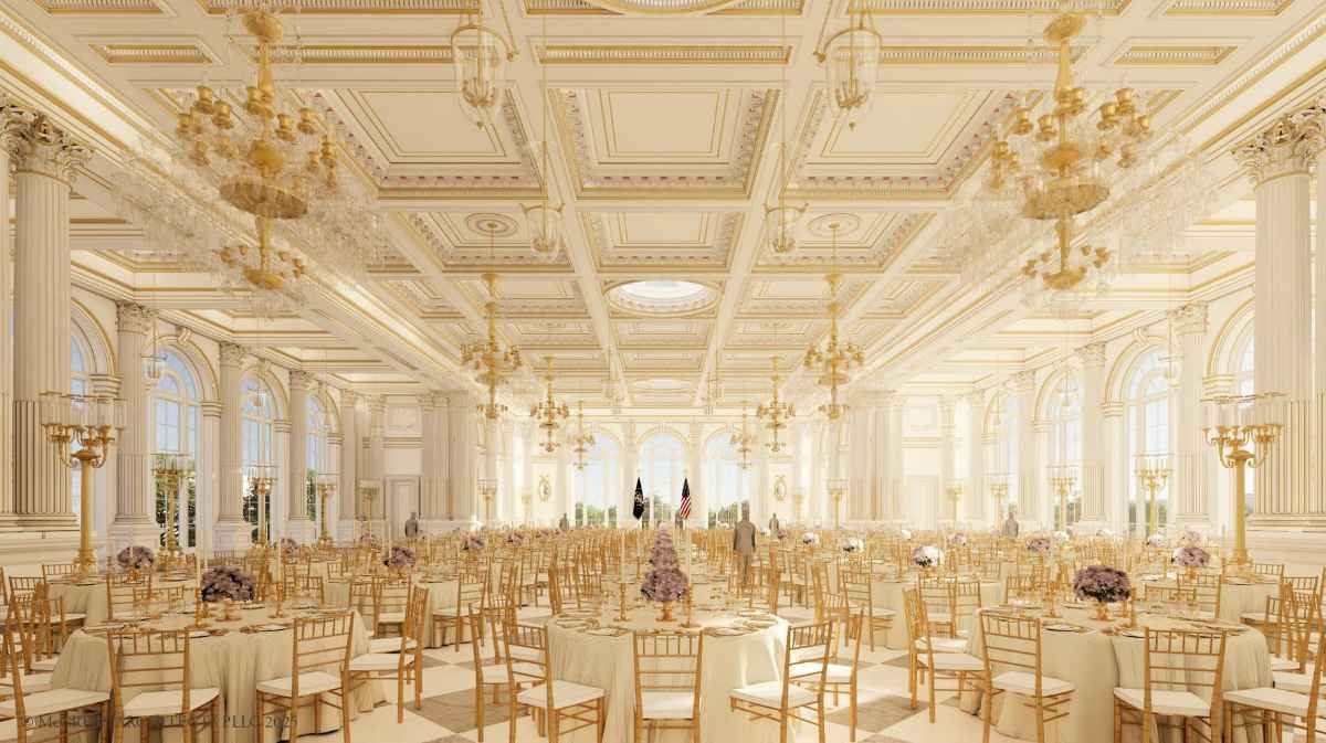 ホワイトハウスで最も大きな部屋は200人分の座席を収容する広さしかない。大規模な催しの際には屋外にテントを設置して開催していたが、トランプ氏は「雨が降る度に惨事だ」などと批判し、ボールルーム新設の必要性を主張していた。