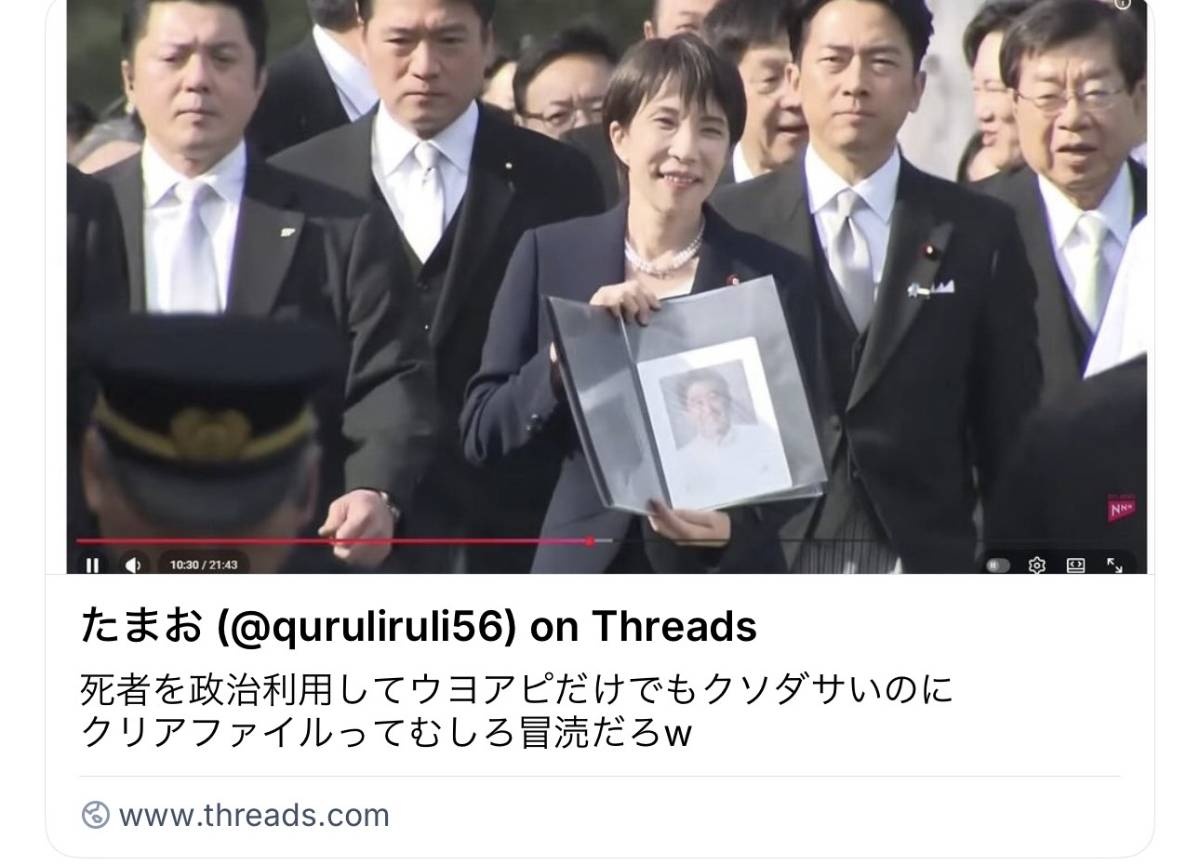 ニッポンの伝統的統一保守高市早苗総理大臣「安倍晋三の遺影はクリアファイルに入れて運ぶのがわーくによ。額縁は中韓の文化よ」