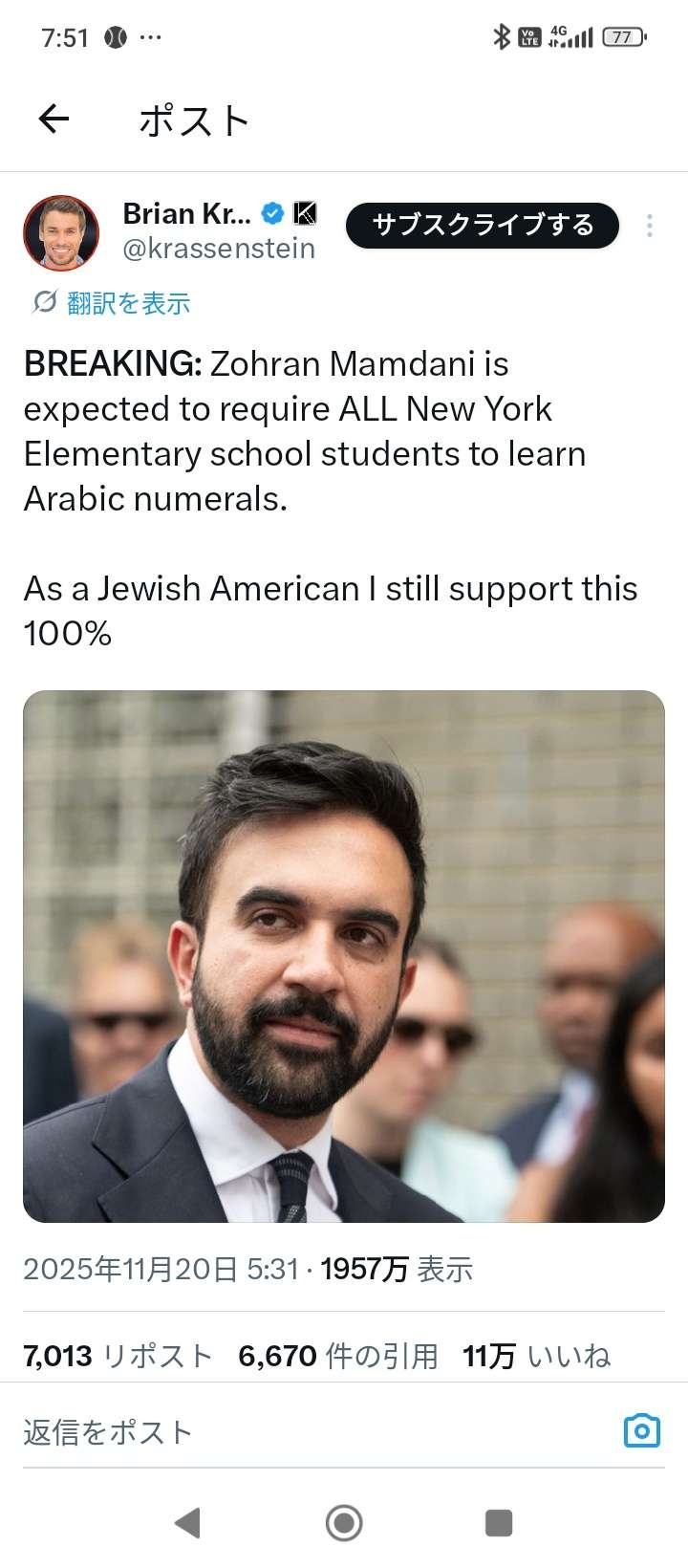 リプ欄では「アラビア語より先に英語を教えろ」「ニューヨークで英語の次に使われてるのはスペイン語だ。スペイン数字を教えろ」「アラビア語ではなく金融を教えろ」と市民が大激怒や - 26 : 2025/12/11(木) 08:03:04.622 ID:le813qqvC