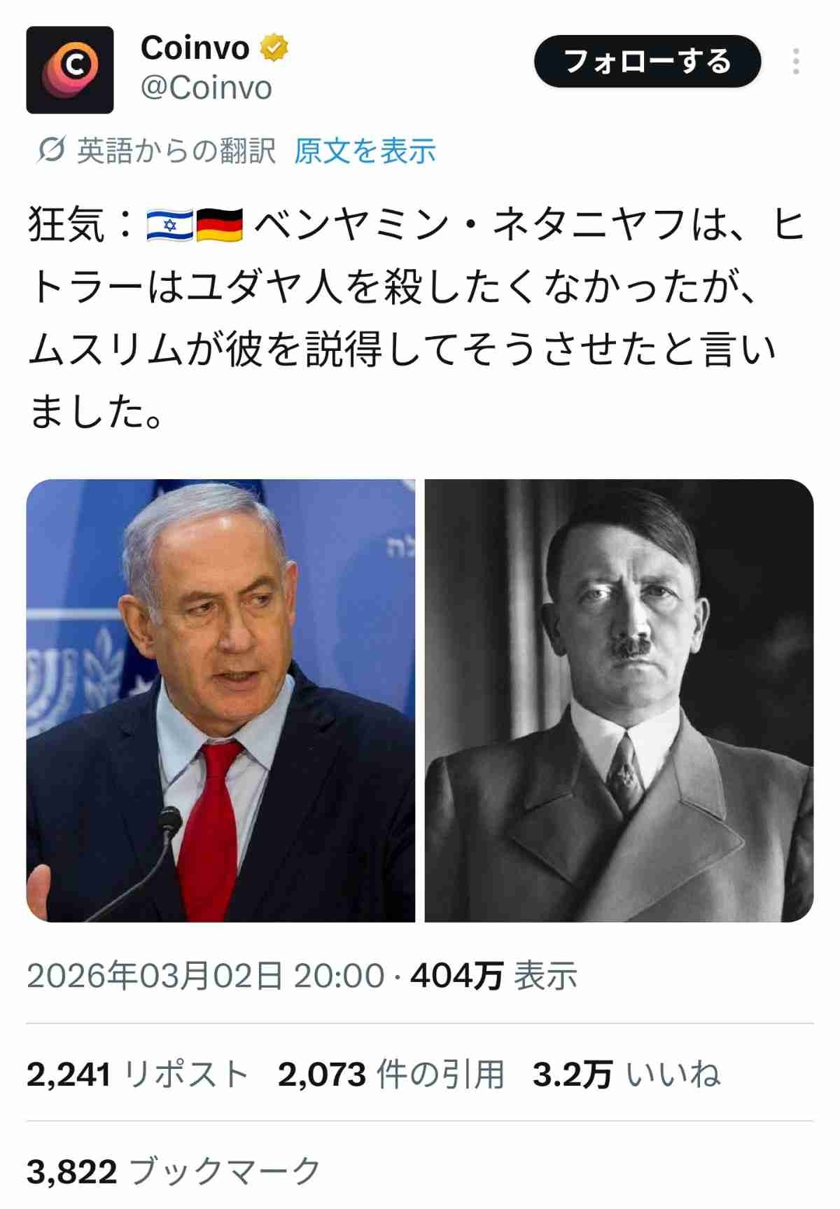 - つまりトランプを諭してイラン攻撃させたネタニヤフはヒトラーなのでは…?