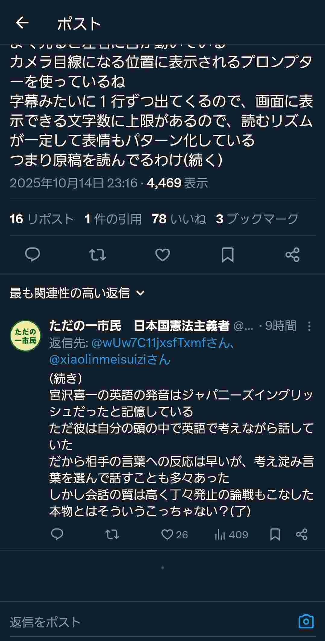 - たぶん英語がわかんない低知能信者は聞き取り辛いなら流暢だと思ってそう