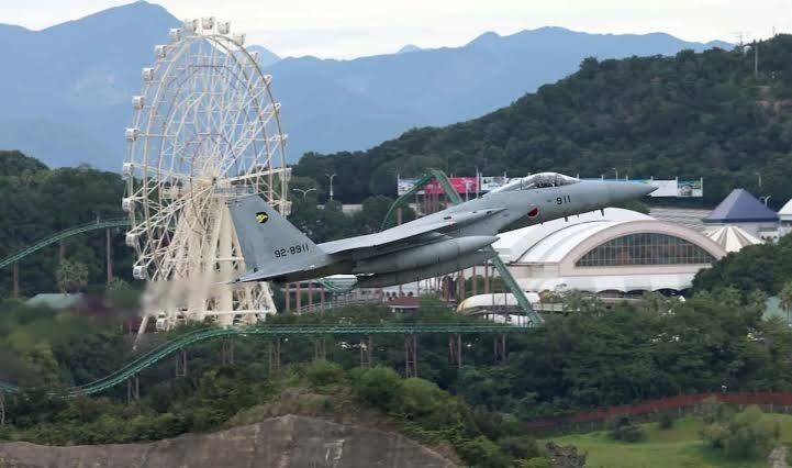 - 遊園地をバックに戦闘機が飛ぶのはなんか面白いね