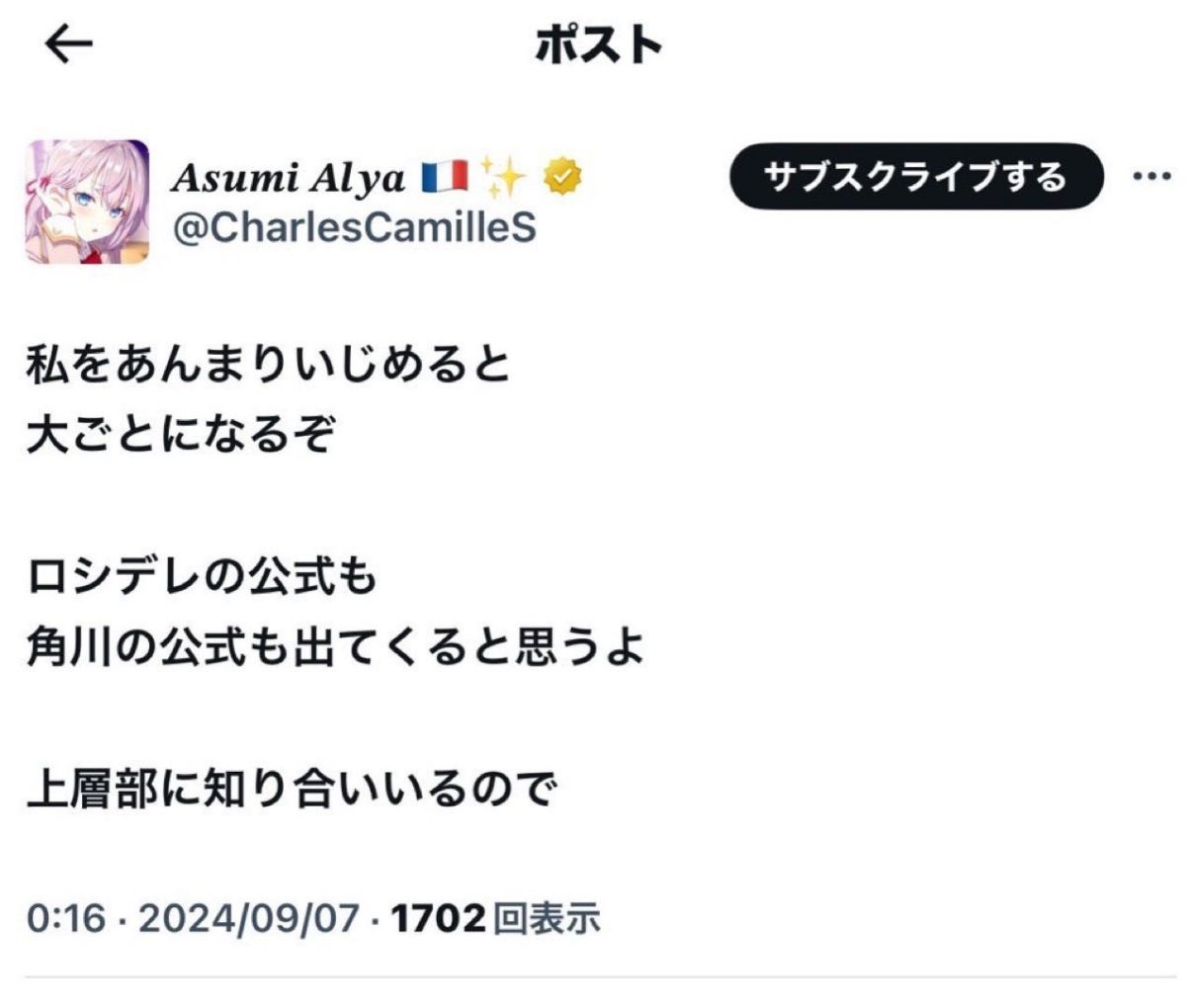 アーリャさんはロシア語で呟いたって文体ばかりでロシア語である必要性が皆無なんよなこれ - 25 : 2025/05/13(火) 07:08:41.664 ID:GXkLiP.t2