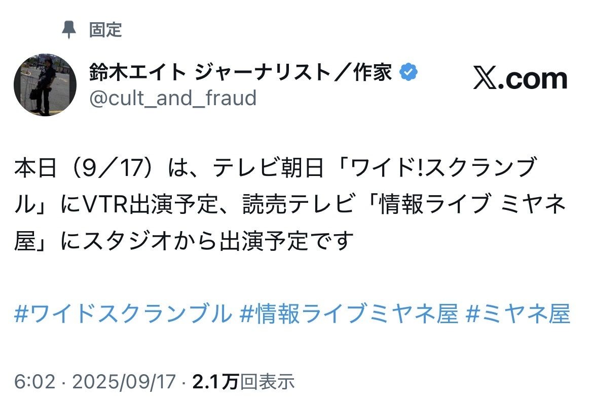 ミヤネ屋 統一教会、エイトあり