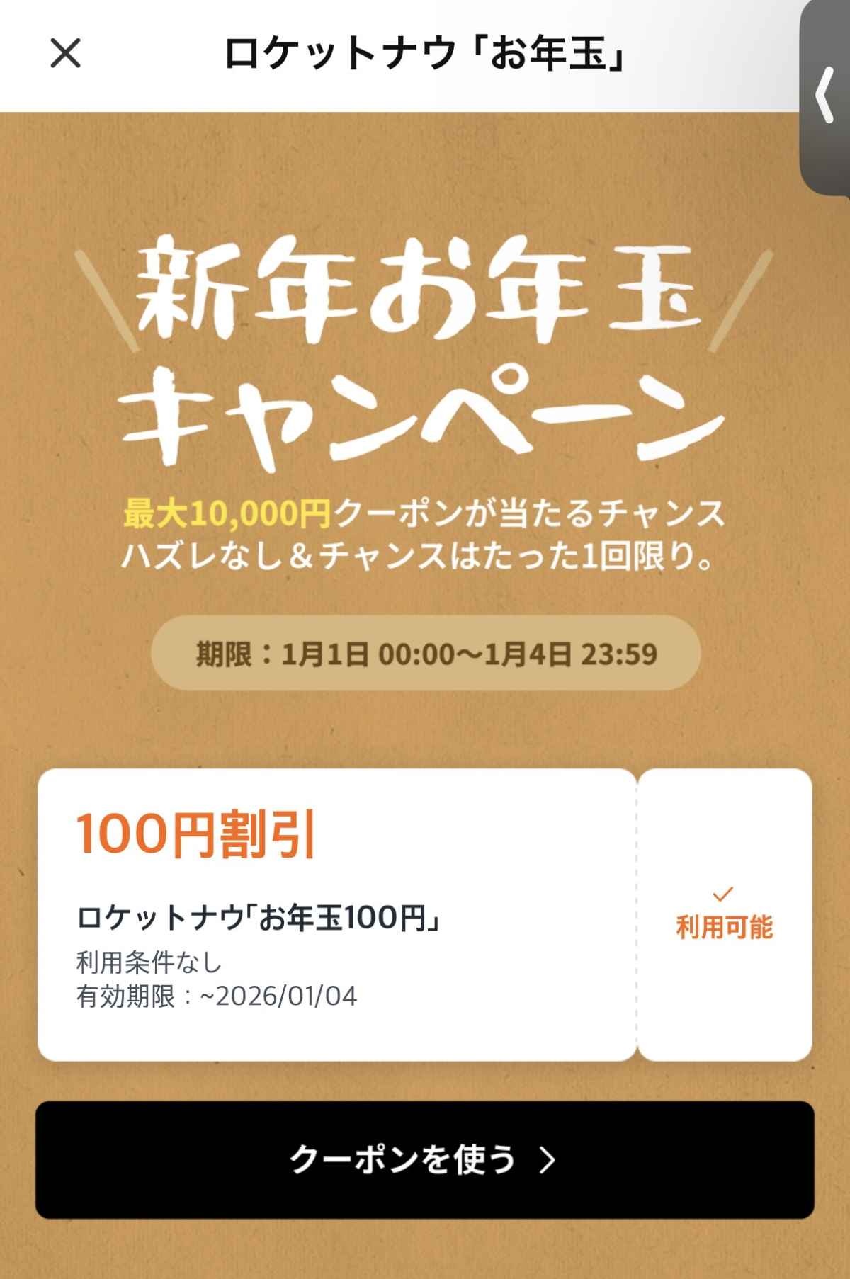 - ロケナウもどんどんクーポン劣化してそろそろ終わりやな