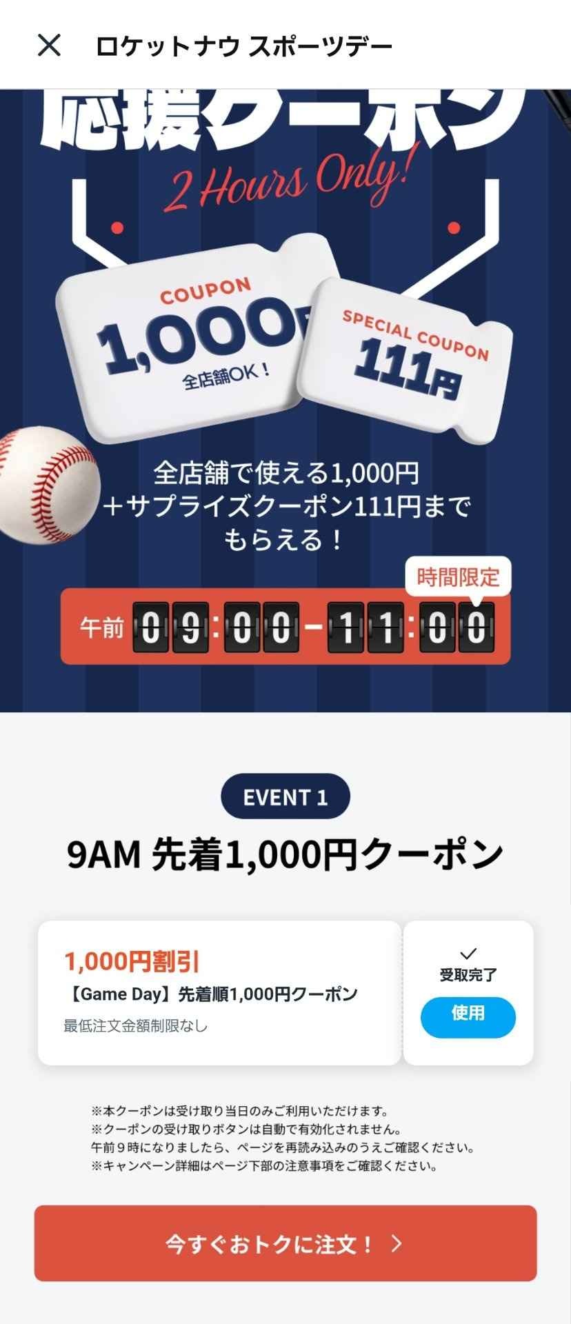 ロケットナウ、WBC応援企画で1000円クーポンを先着で配布!!