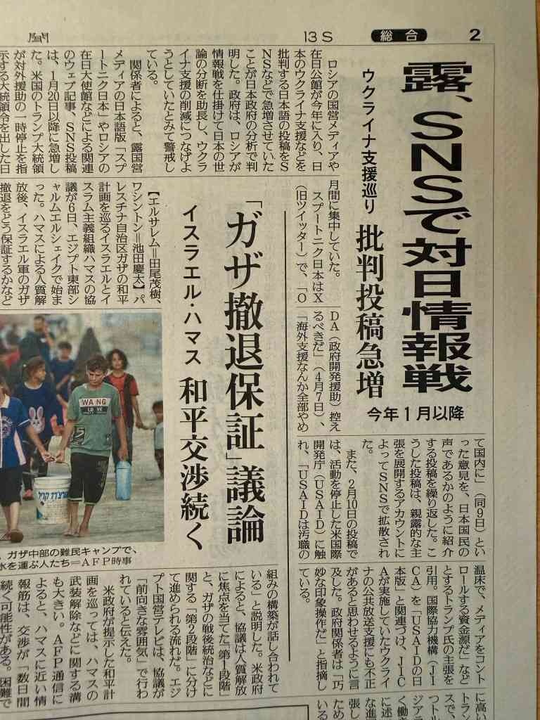 - 読売新聞2面らしい