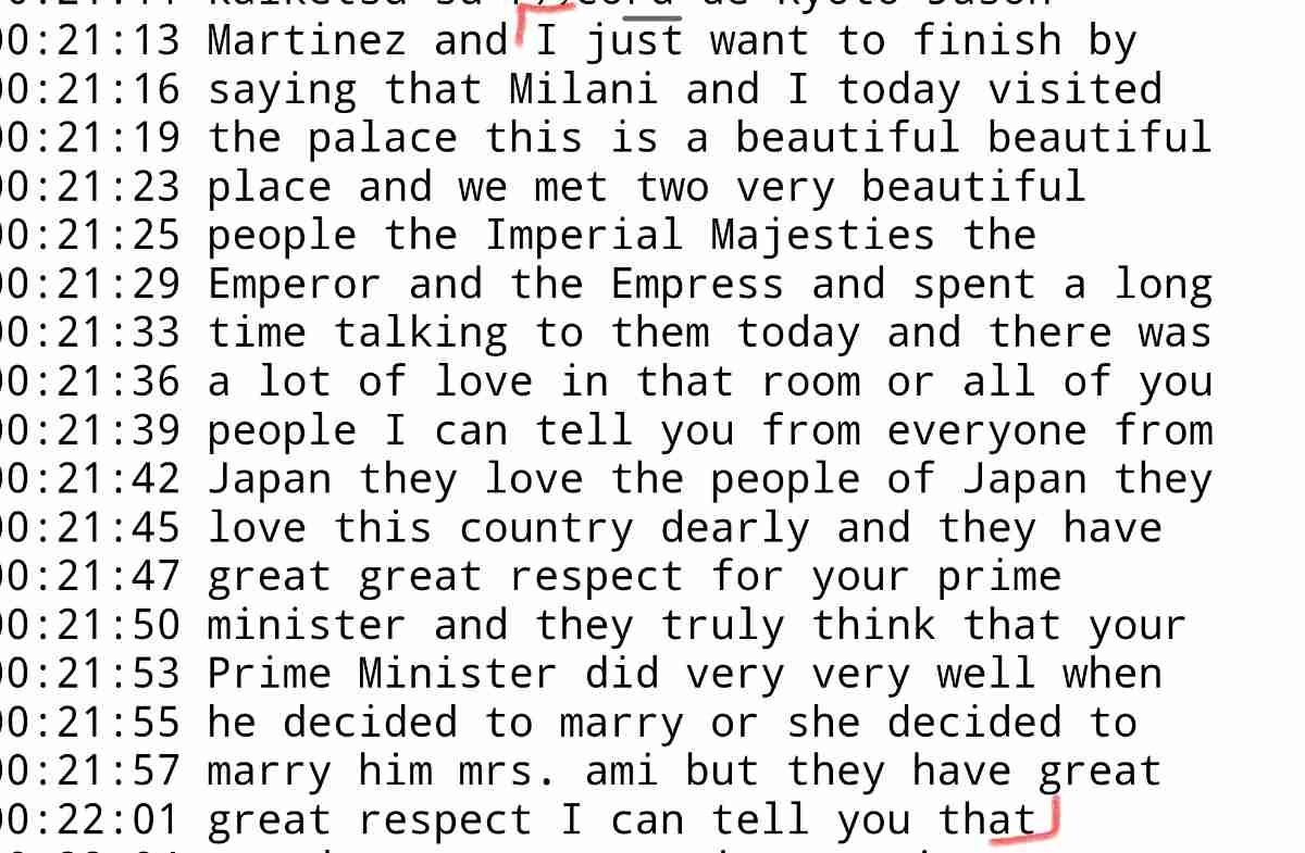 会見ってのは同時通訳したあとに政府の通訳者が逐次通訳し始めるんや