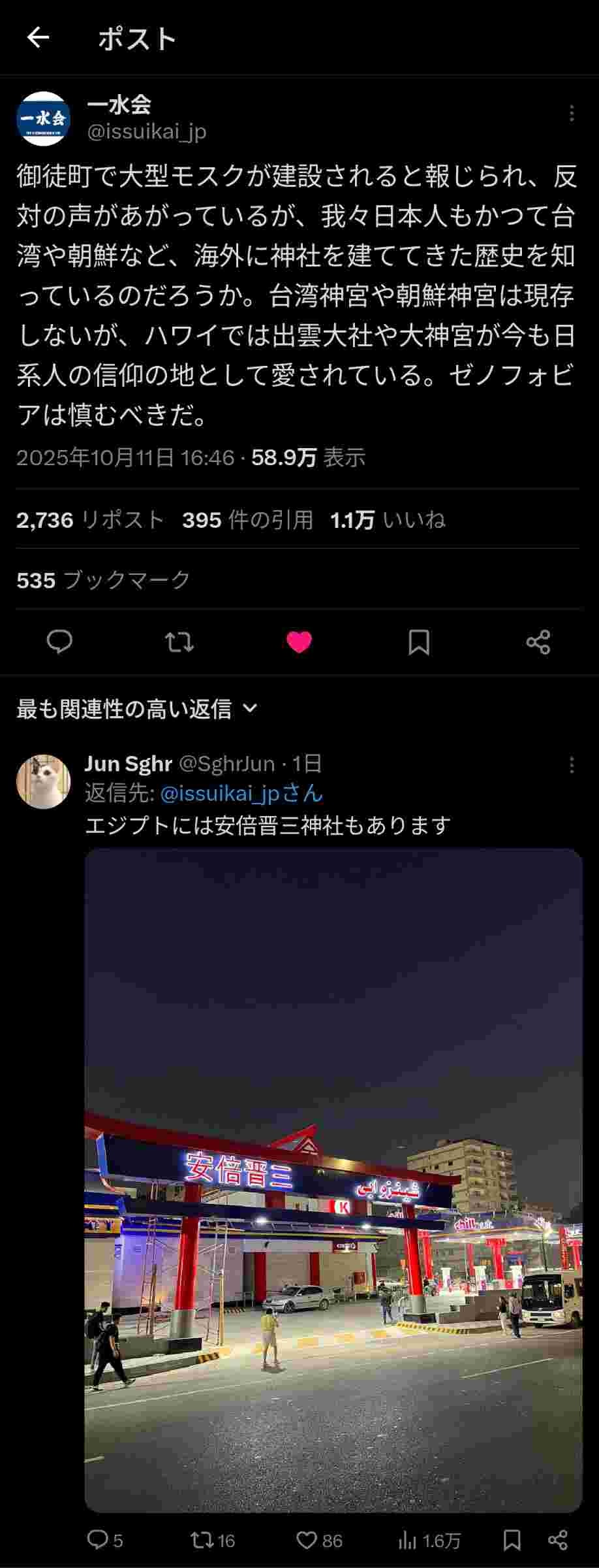 一水会さん、正論「モスク反対?我々日本人も海外に神社建てまくってるんだけど?⛩」