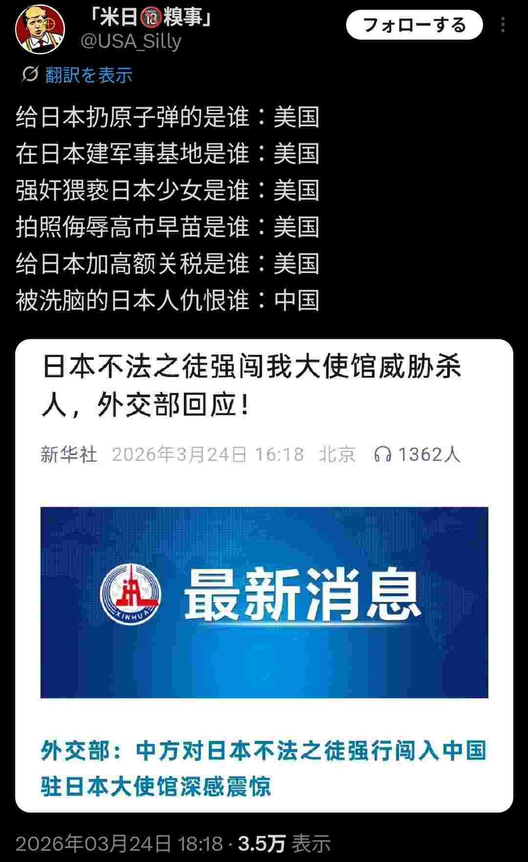 高市早苗を撮影して侮辱したのは誰か: アメリカ