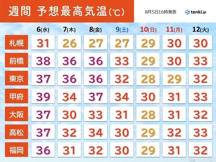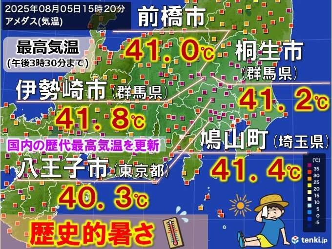 歴史的な暑さ 群馬県伊勢崎市で41.8℃ 明日6日まで酷暑警戒 40℃迫る所も