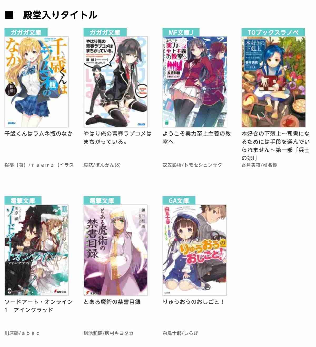- 「このライトノベルがすごい!」殿堂入り一覧