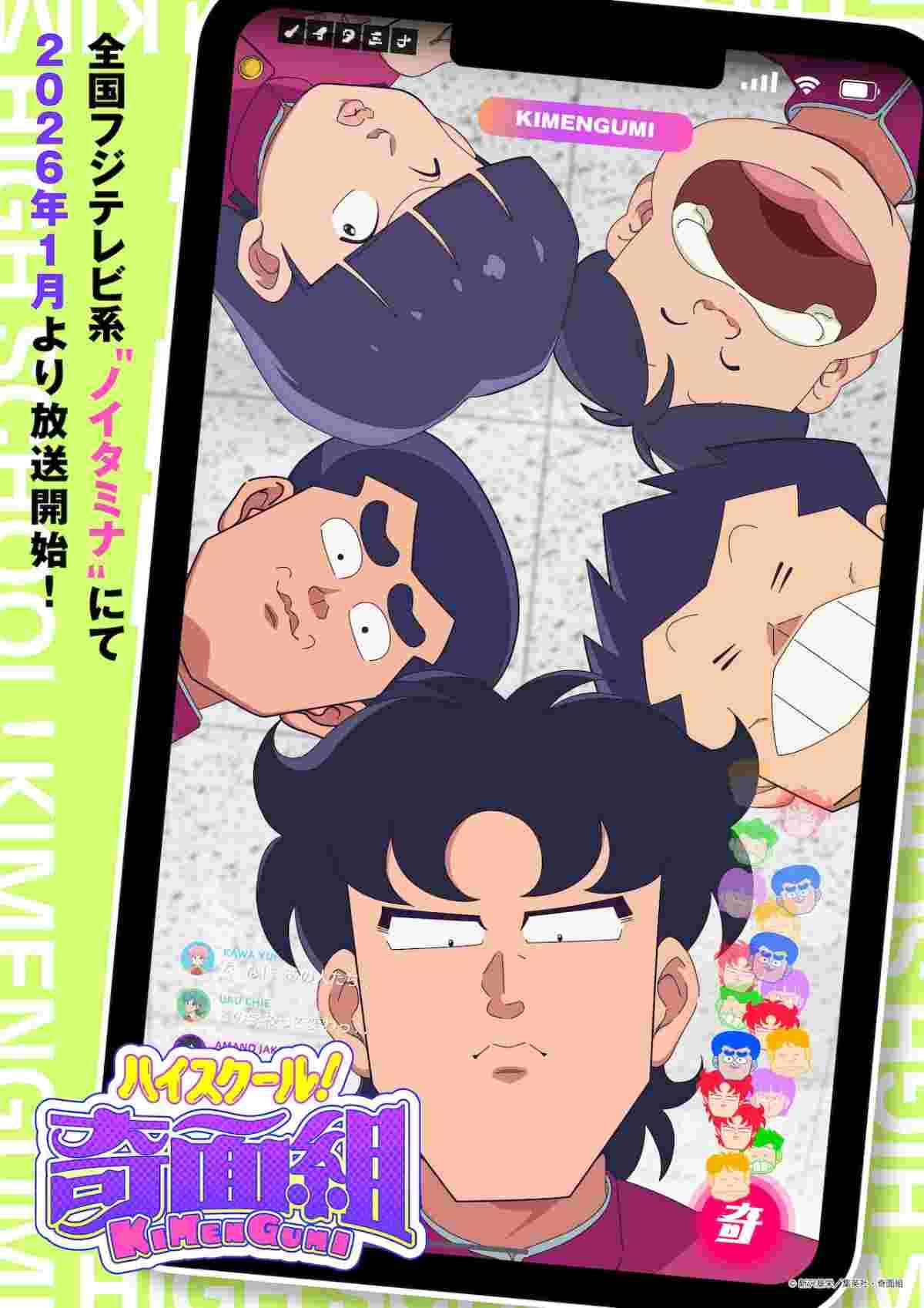 - 新沢基栄原作によるTVアニメ「ハイスクール!奇面組」が、2026年1月より毎週金曜23時30分にフジテレビ系「ノイタミナ」枠で放送されることが決定。ティザービジュアルとキャスト、イメージMVが公開された。