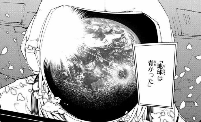 自身が宇宙空間に移動し、地球へ向かって小型のスプートニク1号に似た球状の物体をピンポイントで投擲する
