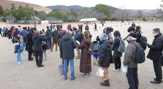 奈良地裁近くの奈良公園には、厳しい寒さの中、朝から一般傍聴席を求める人が多く詰めかけた。傍聴席の抽選券の交付は午前8時半ごろに開始。一般傍聴席は約30席だが、はるかに上回る人たちが並んだ。