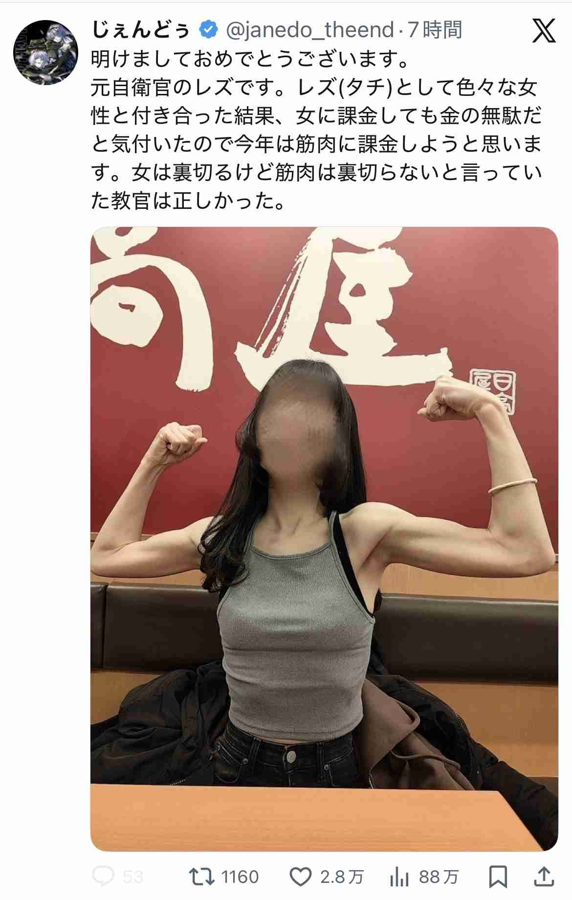 元自衛官レズ、女の真理に気づく「女に課金しても金の無駄」2.8万いいね