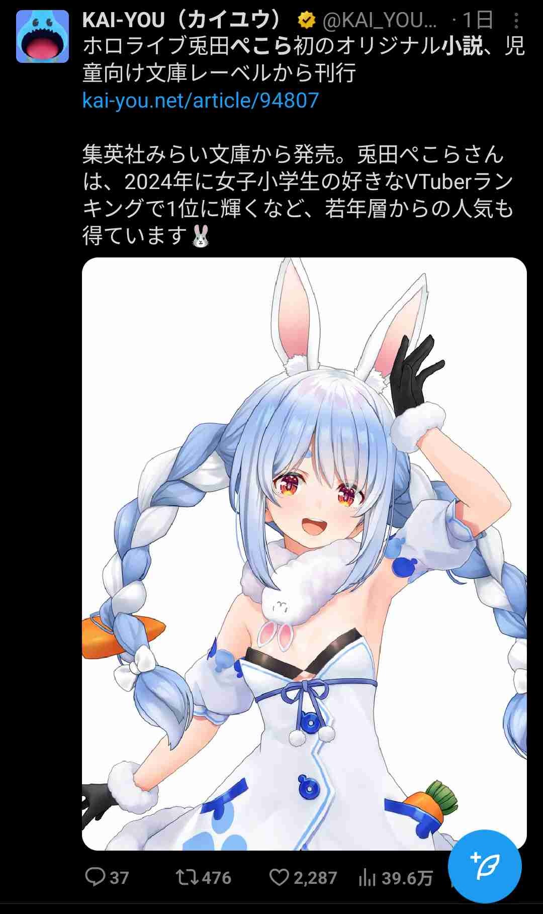 兎田ぺこらさん、Vtuber史上初の「オリジナル小説」を発売するwww