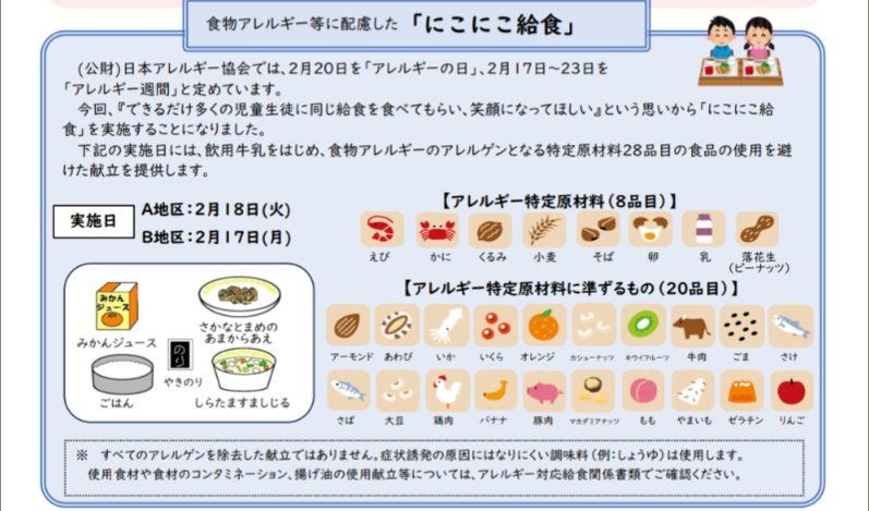 - アレルギーの日にアレルギー特定原材料を排除した給食出してるだけなのを