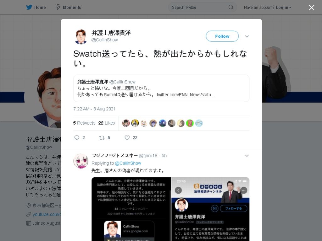 - 弁護士唐澤貴洋 鷲鳥不群 走り続けろ、夜明けまで。 @CallinShow (2025/09/09 13:51:01)