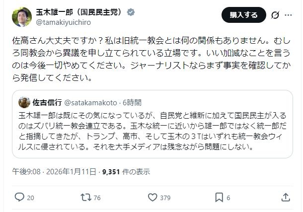 - 玉木が統一教会から異議を申し立てられているってなんだ?