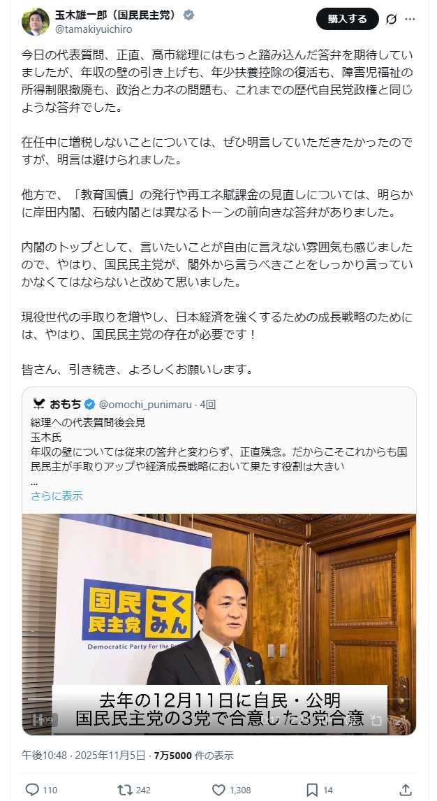 - 玉木のXは長すぎて誰も読まないって指摘されてたな