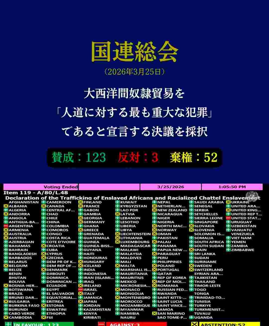 奴隷使ってた国で賛成したのは🇷🇺だけか