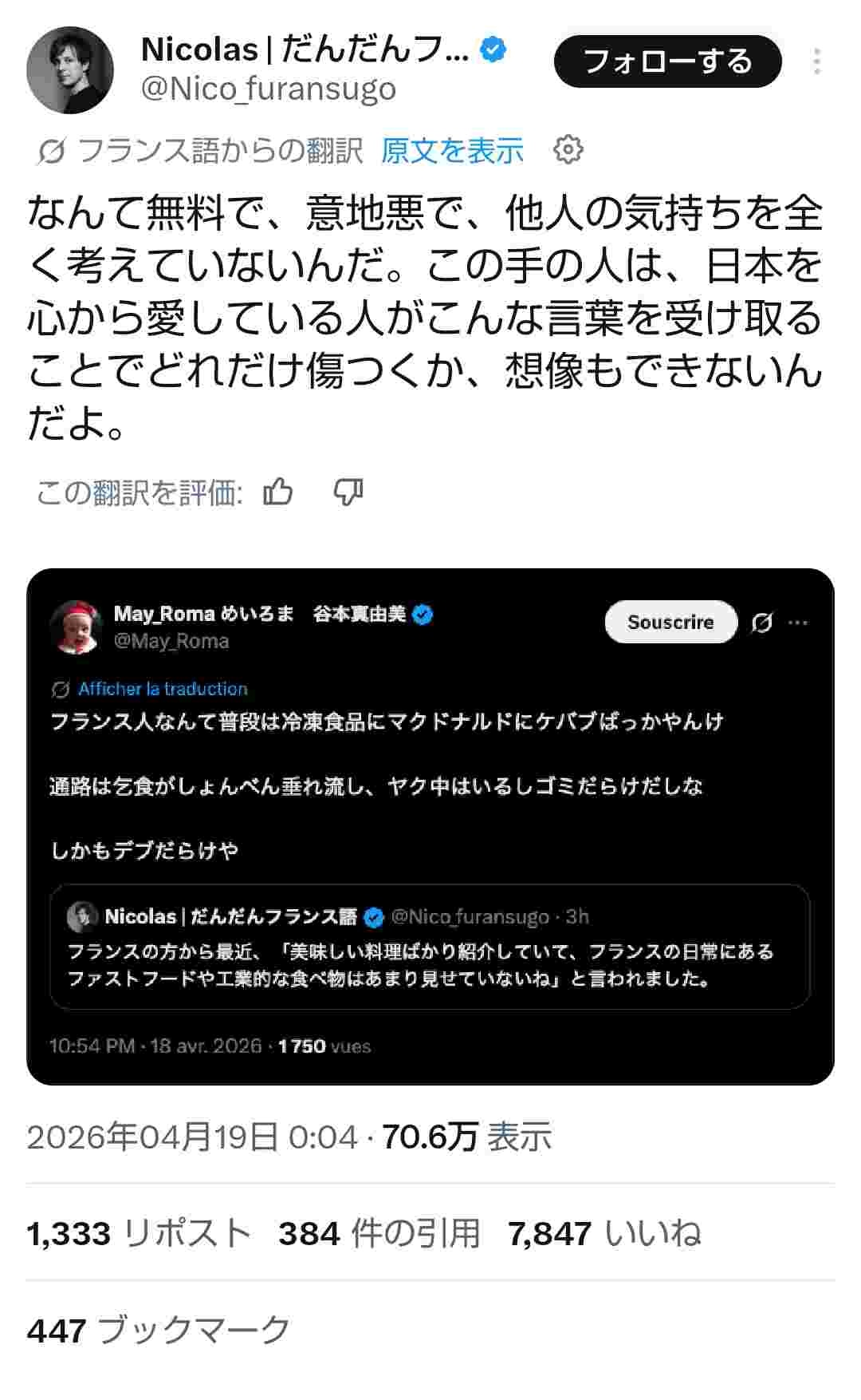 X見ると外国人の論理的な批判に対して日本人がブチ切れて外国の悪口言ってばっかりだぞ - 38 : 2026/04/19(日) 13:09:02.72 ID:r7RiGFNW0