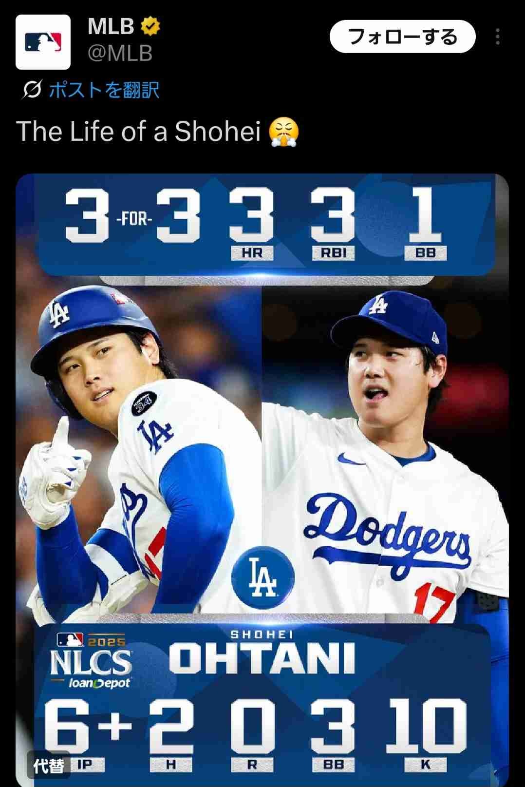 - リーグチャンピオンシップで先発ピッチャーが6回0/3被安打2無失点10奪三振3打数3安打3本塁打で勝利投手になったのは多分初めて