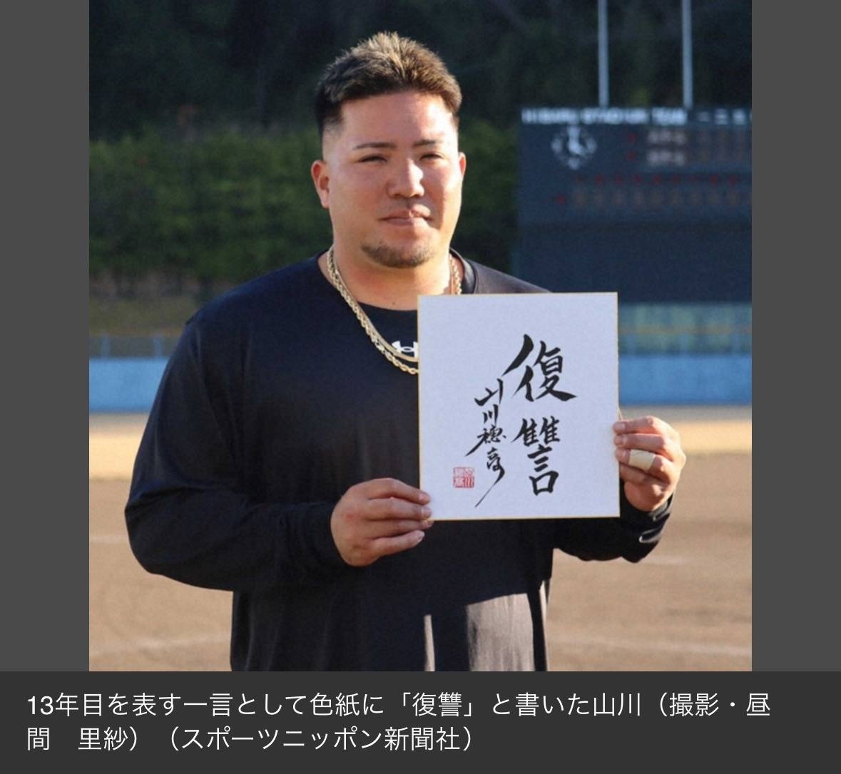 山川穂高さん、来季を表す言葉として「復讐」と色紙に書く