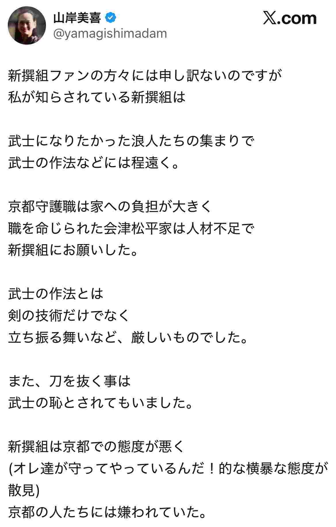 徳川慶喜の子孫、「新選組は武士じゃない、作法も何も知らない浪人たち」と発言し謝罪