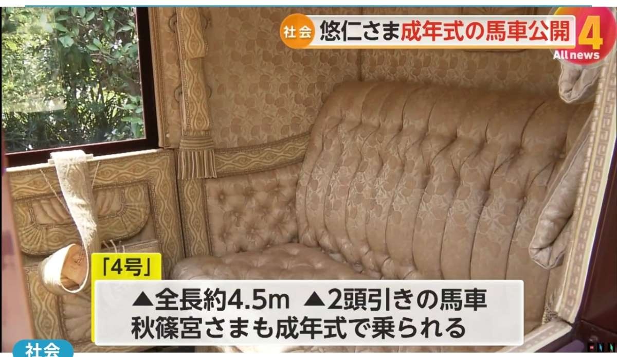 秋篠宮家の長男・悠仁さまが9月の成年式で乗られる馬車が公開されました。