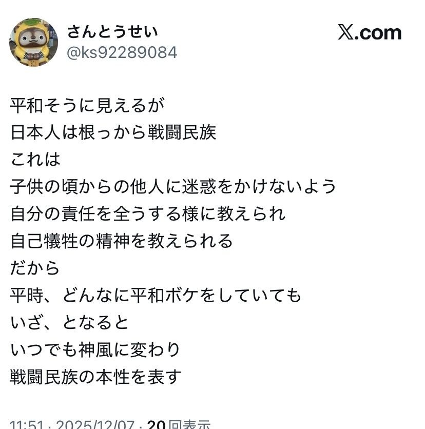 国を愛するってなんだよそもそも - 46 : 2025/12/08(月) 01:48:28.57 ID:pKr9xAsi0