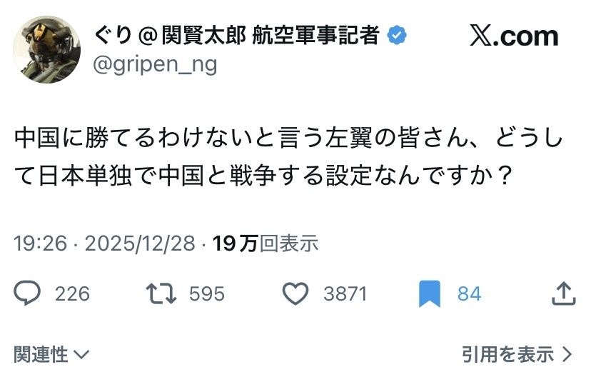 他の軍事研究家と勘違いしてるかワイ - 21 : 2025/12/30(火) 19:43:01.287 ID:Jd/aOBFzy