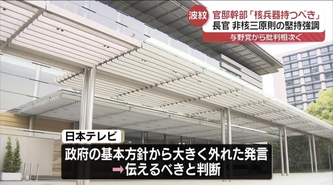 政府関係者「オフレコでお願いね」日テレ「りょ!」政府関係者「核兵器日本も持った方が良くね?」日テレ「あかん、報道するぅ!」