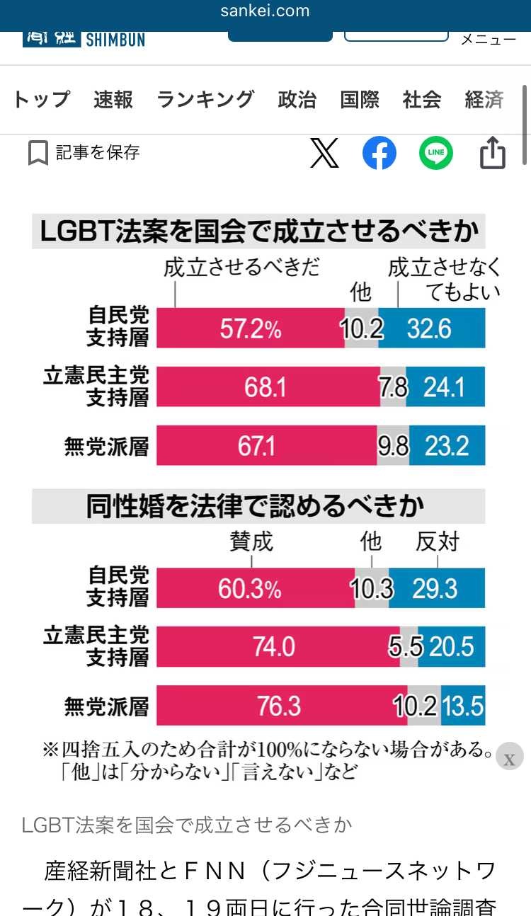 同性婚反対のネトウヨ保守系新聞の産経の調査でも賛成が多数という調査 - 3 : 2025/08/05(火) 17:42:21.11 ID:S815jkjz0