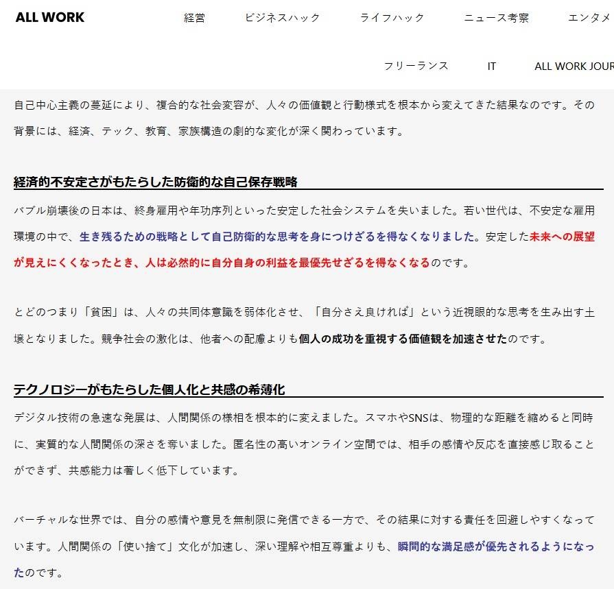競争社会の激化は、他者への配慮よりも個人の成功を重視する価値観を加速させたのです。
